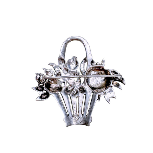 Art Deco Marcasite & Silver Flower Basket Brooch