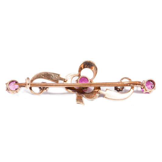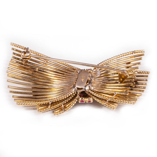 Stunning Antique Ruby Bow Brooch in 14ct yellow Gold