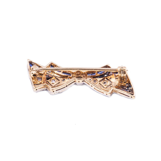 Original Art Deco Platinum Diamond & Sapphire Bow Brooch