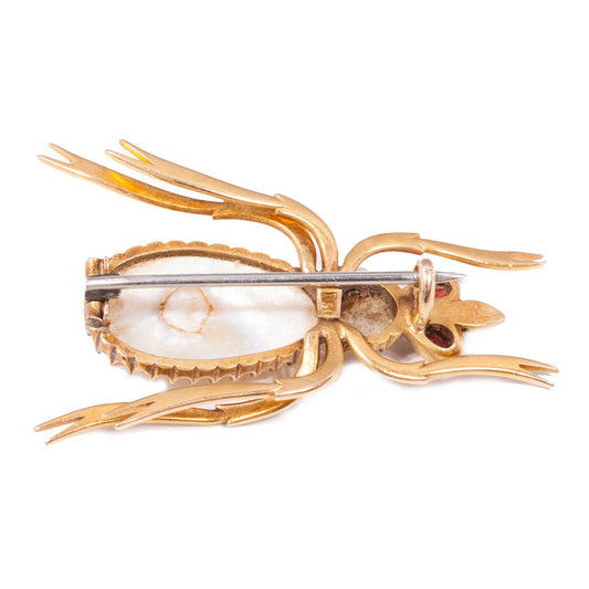 Antique Diamond & Ruby & Pearl Brooch in 18ct