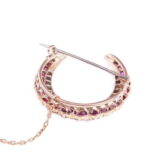 Antique Ruby & Diamond Crescent Brooch in 15ct