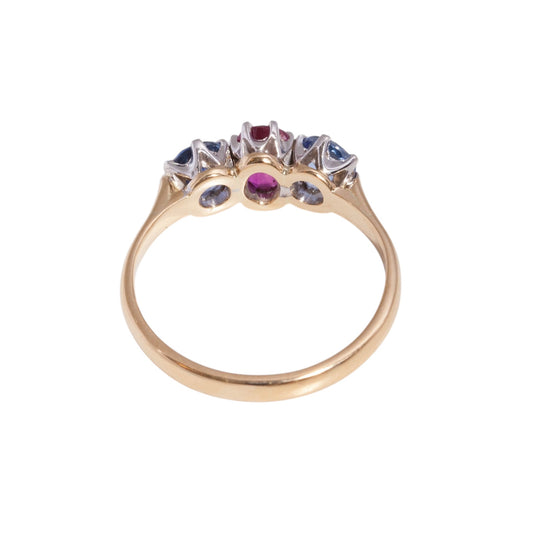 Melbourne Footy Club colours - Handmade Sapphire and Ruby 3 stone ring set in 18ct yellow gold