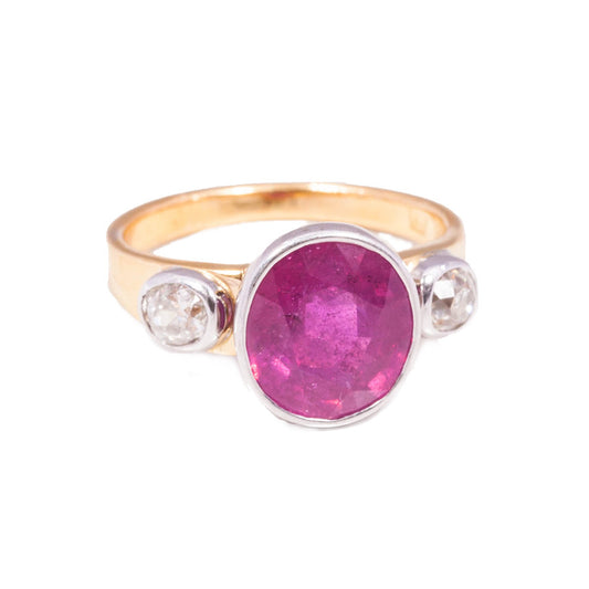 Vintage 4.50 ct Ruby & Diamond cocktail ring in 18ct yellow gold