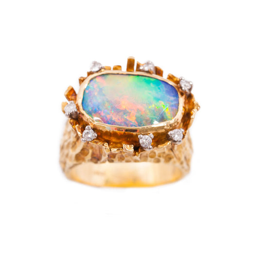 Vintage (circa 1970) Black Opal & Diamond Ring in 18 ct yellow gold