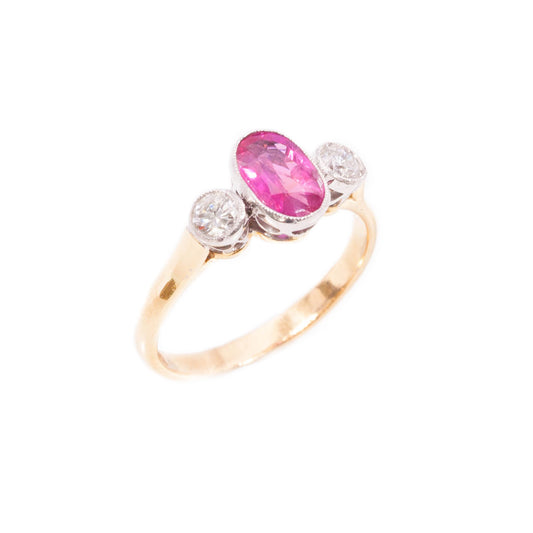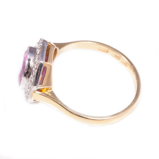 Handmade Art Deco Style Pink Sapphire & Diamond Ring in 18ct white and yellow gold