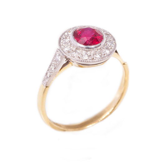 Ruby & Diamond Art Deco Style Cluster ring in 18ct