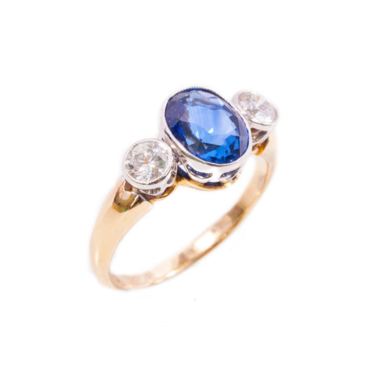 Handmade Ceylon Sapphire & Diamond Ring in 14ct gold