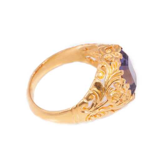 Handmade Art deco Style Iolite Ring in 22ct yellow gold