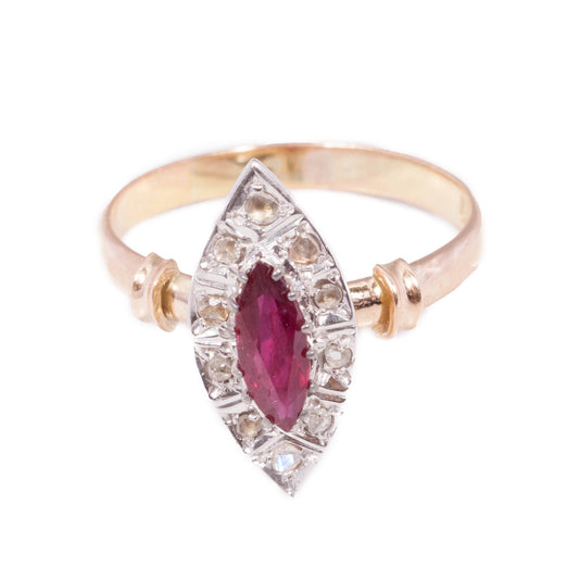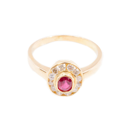 Vintage ruby & diamond cluster ring in 18ct yellow gold