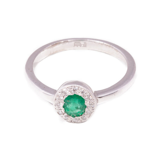 Art Deco Style Emerald & Diamond Ring in 18ct white gold