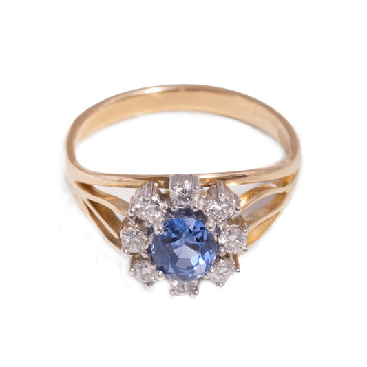 Handmade Sapphire and Diamond Cluster ring in 18ct