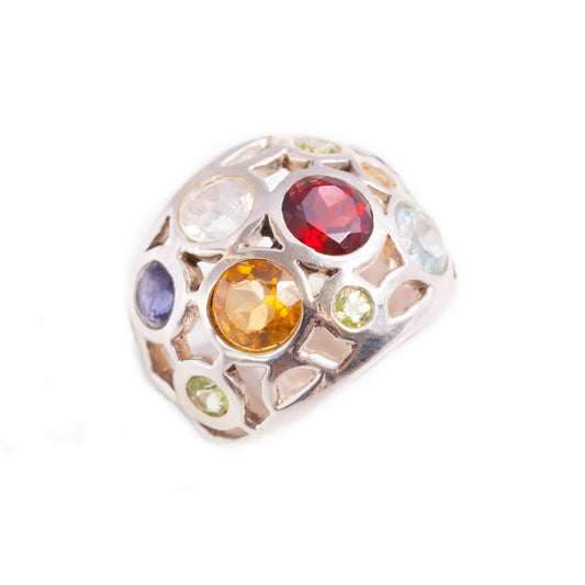 Garnet, Topaz, Amethyst, Peridot & Citrine Silver Cocktail Ring